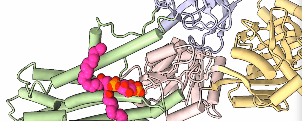 We also study glycan-dependent protein trafficking, including the mannose-6-phosphate (M6P) pathway for lysosomal targeting. Structural studies of the human GlcNAc-1-phosphotransferase revealed a regulatory “hockey stick” motif that controls enzyme activation and explained hyperactivity caused by disease-relevant truncations (Li et al., 2022, Nat Struct Mol Biol; Li et al., 2024, J Biol Chem).