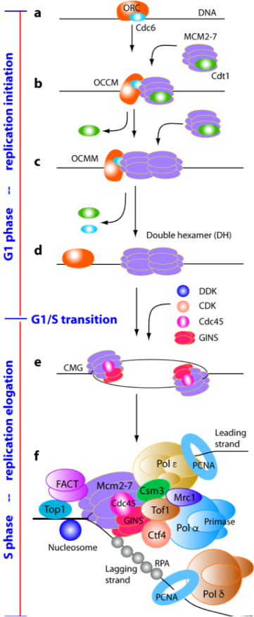 Yuan Z, Li H. 2020. Molecular mechanisms of eukaryotic origin initiation, replication fork progression, and chromatin maintenance. Biochem J 477(18):3499–3525.