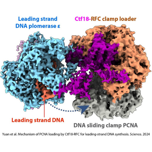 Efficient DNA synthesis requires the PCNA sliding clamp and its loaders. We discovered how the canonical RFC recognizes both 3′ and 5′ DNA ends to load PCNA at gaps during lagging-strand synthesis and DNA repair (Zheng et al., 2022, eLife). We further uncovered how Ctf18-RFC mediates PCNA loading onto the leading strand through direct interactions with Pol ε, enabling lateral DNA transfer into the PCNA ring (Yuan et al., 2024, Science; He et al., 2024, PNAS). Additionally, we revealed how Elg1/ATAD5-RFC acts as a dedicated PCNA unloader through specialized structural features that prevent DNA binding (Zheng et al., 2024, Sci Adv; Wang et al., 2024, Nat Struct Mol Biol).